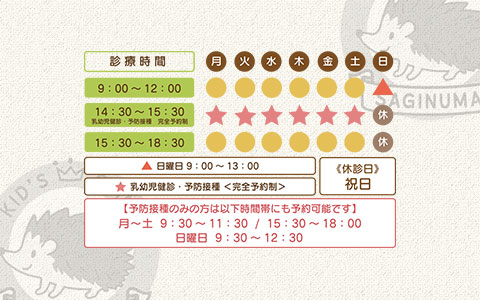 東急田園都市線「鷺沼駅」から歩いて4分。 当院では一般診療はもちろん、予防接種や乳幼児健診などもお受けしております。 お子さんに関することは、どんなことでもご相談ください。
